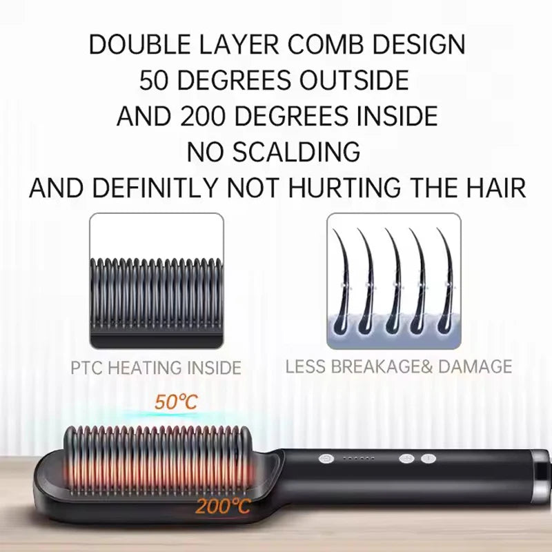2in1 Hair Styler Straightening Hot Comb Fast Heated Ceramic Negative Ion Curler Straightener Brush Anti-Scalding Styling Tools